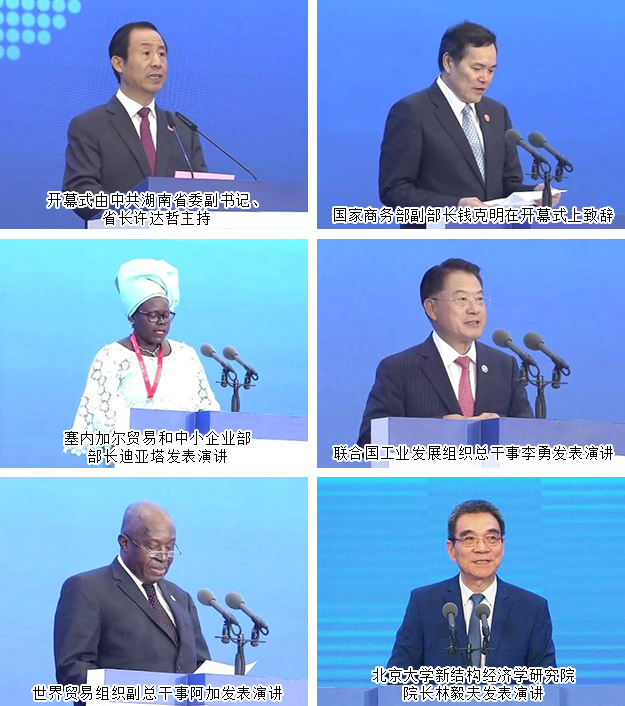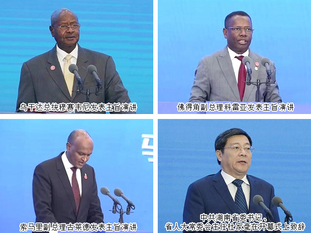 2019年6月27日,首屆中國—非洲經(jīng)貿博覽會在湖南長沙開幕。開幕式上,中共中央政治局委員、國務院副總理胡春華宣讀習近平主席的賀信,發(fā)表主旨演講,并宣布第一屆中國—非洲經(jīng)貿博覽會開幕。烏干達總統(tǒng)穆塞韋尼、佛得角副總理科雷亞、索馬里副總理古萊德出席開幕式并發(fā)表主旨演講。中共湖南省委書記、省人大常委會主任杜家毫致辭,中共湖南省委副書記、省長許達哲主持開幕式。國家商務部副部長錢克明致辭。塞內加爾貿易和中小企業(yè)部部長迪亞塔、聯(lián)合國工業(yè)發(fā)展組織總干事李勇、世界貿易組織副總干事阿加、北京大學新結構經(jīng)濟學研究院院長林毅夫先后發(fā)表演講。