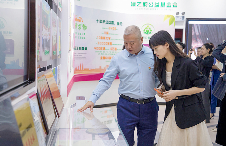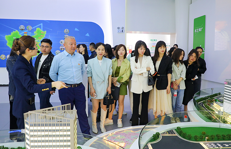 參訪組一行先后參觀了綠之韻黨建文化教育基地和國際會議中心展廳。胡均安常務副總裁詳細講解了綠之韻集團的產(chǎn)業(yè)布局、產(chǎn)品生產(chǎn)、文化品牌建設、公益慈善活動及非公黨建工作的開展情況。毛老師和同學們對綠之韻深耕大健康產(chǎn)業(yè)、積極投身公益慈善事業(yè)及“家的文化、水的精神”的企業(yè)文化理念給予高度評價和贊許。