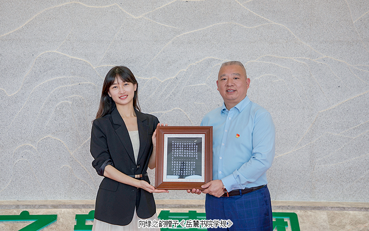 座談會上,胡均安常務副總裁對毛老師和同學們的到來表示熱烈歡迎。梅其慧常務副總經(jīng)理作主題分享,并對同學們提出的“綠之韻的企業(yè)發(fā)展理念”“人才管理培養(yǎng)體系”“企業(yè)文化建設”等方面問題,一一予以詳盡解答。毛老師和同學們紛紛表示,在綠之韻人的眼睛里看到了光,這是對公司企業(yè)文化的認同感,也是綠之韻堅持企業(yè)培訓和人才信念的匠心。交流尾聲,毛老師代表湖南大學工商管理學院EDP中心向綠之韻贈予代表千年學府歷史文脈的《岳麓書院學規(guī)》。