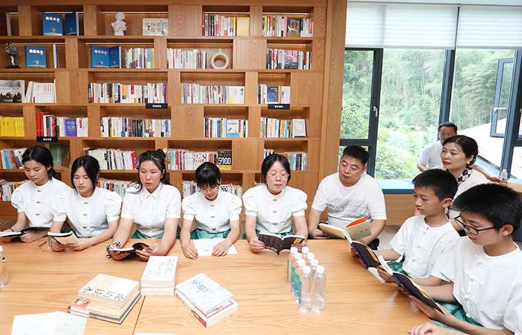 為引導(dǎo)青少年學(xué)生傳承和弘揚(yáng)中華民族優(yōu)秀傳統(tǒng)文化,增強(qiáng)對(duì)國學(xué)經(jīng)典的認(rèn)同感和自豪感,營造濃厚讀書氛圍,2024年5月23日,安化大橋?qū)W校校長黃軍帶領(lǐng)優(yōu)秀師生代表在致公·綠韻書屋舉行研學(xué)活動(dòng)暨經(jīng)典誦讀主題讀書分享會(huì)。安化縣人大常委會(huì)黨組書記、主任陳飛燕,安化縣人民政府黨組成員、副縣長莫超,湖南省慈善總會(huì)副會(huì)長、綠之韻集團(tuán)董事長胡國安,安化縣人大代表、綠之韻集團(tuán)常務(wù)副總裁胡均安,安化縣政協(xié)委員、綠之韻集團(tuán)副總經(jīng)理胡武安,綠之韻集團(tuán)戰(zhàn)略委委員呂秀玲,瀏陽市政協(xié)委員、湖南省綠之韻公益基金會(huì)秘書長蔣文參加讀書會(huì)活動(dòng)。