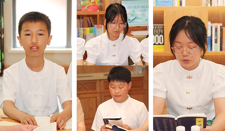 與經(jīng)典同行,和圣賢為伍。讀書分享會(huì)上,在老師的帶領(lǐng)下,同學(xué)們對(duì)《論語》中的經(jīng)典篇章,通過誦讀、解析、釋義,互相交流并分享自己的感受,共同走進(jìn)孔子的精神世界。讀書會(huì)高潮,同學(xué)們共同誦讀《學(xué)而》篇章,“學(xué)而時(shí)習(xí)之,不亦說乎?有朋自遠(yuǎn)方來,不亦樂乎?人不知而不慍,不亦君子乎?”“吾日三省吾身:為人謀而不忠乎?與朋友交而不信乎?傳不習(xí)乎?”……同學(xué)們的朗朗讀書聲環(huán)繞在整個(gè)綠韻書屋。隨后,讀書會(huì)特邀嘉賓胡武安、呂秀玲、蔣文分別與同學(xué)們做《論語》讀書交流和人生故事分享,充分鼓勵(lì)同學(xué)們通過讀書會(huì)這樣的方式閱讀經(jīng)典,對(duì)話先賢,感受中華傳統(tǒng)文化的魅力,獲得人生成長的力量。