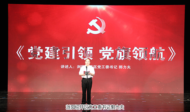 瀏陽經(jīng)開區(qū)黨工委書記郭力夫以“黨建引領(lǐng),黨旗領(lǐng)航”為主題發(fā)表講話。他首先代表瀏陽經(jīng)開區(qū)黨工委向受到表彰的黨建示范點、先進基層黨組織和優(yōu)秀共產(chǎn)黨員表示熱烈的祝賀。他表示,此次表彰活動旨在進一步貫徹落實黨的十九大精神,高舉新時代中國特色社會主義思想的偉大旗幟,促進園區(qū)高質(zhì)量發(fā)展,匯聚磅礴力量。未來,瀏陽經(jīng)開區(qū)將繼續(xù)堅持黨建引領(lǐng),推動園區(qū)轉(zhuǎn)型升級,突出“產(chǎn)業(yè)項目建設(shè)年”“營商環(huán)境優(yōu)化年”“黨支部建設(shè)年”的工作主線,不斷開創(chuàng)園區(qū)工作的新局面,以實際行動為黨旗爭輝添彩,為發(fā)展建功立業(yè)。