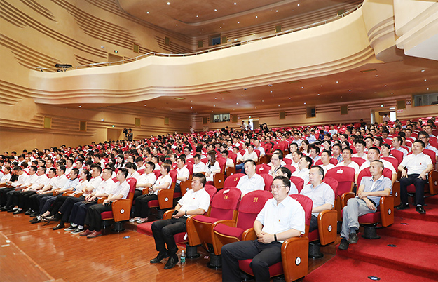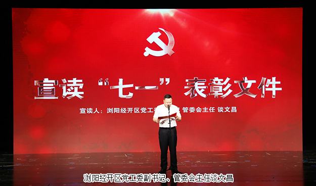 2019年6月27日,瀏陽經(jīng)開區(qū)黨工委在瀏陽金陽文化藝術(shù)中心召開2019年“七一”表彰大會。瀏陽經(jīng)開區(qū)黨工委書記郭力夫,瀏陽經(jīng)開區(qū)黨工委副書記、管委會主任談文昌以及全體黨委領(lǐng)導(dǎo)、機關(guān)黨員、非公經(jīng)濟黨組織負(fù)責(zé)人、優(yōu)秀黨員和2019年度新發(fā)展的預(yù)備黨員參加會議。綠之韻集團黨委書記劉云、黨委副書記許達(dá)仲帶領(lǐng)集團優(yōu)秀黨務(wù)工作者、優(yōu)秀黨員、預(yù)備黨員參加會議。