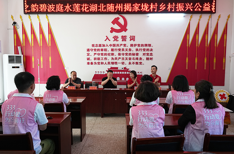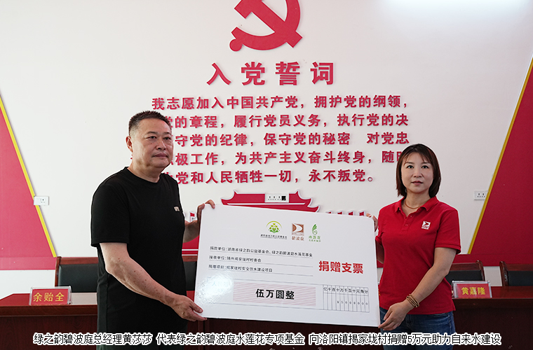 2024年6月12日,綠之韻碧波庭助力落后地區(qū)鄉(xiāng)村自來(lái)水建設(shè)暨慰問(wèn)當(dāng)?shù)乩щy群眾活動(dòng),走進(jìn)隨州市曾都區(qū)洛陽(yáng)鎮(zhèn)揭家垅村。此次公益活動(dòng),綠之韻碧波庭水蓮花專(zhuān)項(xiàng)基金捐贈(zèng)5萬(wàn)元善款用于自來(lái)水建設(shè),并向當(dāng)?shù)乩щy戶(hù)捐贈(zèng)愛(ài)心慰問(wèn)金和生活物資。