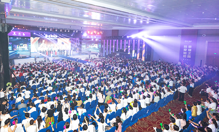 在現(xiàn)場最為熱烈的掌聲中,綠之韻集團董事長胡國安上臺講話。胡國安董事長首先向綠之韻幸福國際的五周歲生日送上了真摯的祝福,對今天獲得獎項的所有市場精英表示熱烈的祝賀。并向因為天氣等各種原因不能來到現(xiàn)場通過視頻等方式收看綠之韻幸福國際五周年慶典的所有幸福國際家人們致以誠摯的問候和真誠的感謝。今天的長沙,經(jīng)歷了上半年以來的最大暴雨,從長沙到瀏陽半小時的路程,他歷時近兩個小時才來到會議現(xiàn)場,見到了各位綠之韻幸福國際代言人?;毓镜穆肥瞧D難的,但他心中始終抱有一個想法,今天是綠之韻幸福國際的五周歲生日,他一定要見到各位幸福國際的家人,向大家送上生日的祝福。五年前,夏總帶領(lǐng)著所有綠之韻幸福國際的伙伴和市場精英,面對疫情侵襲后艱難的市場環(huán)境,歷經(jīng)風雨,飽經(jīng)滄桑。但你們始終堅持傳承中華五千年養(yǎng)生文化,致力于讓科技養(yǎng)生進萬家,堅持長期主義,堅持以產(chǎn)品為導向,最終迎來了綠之韻幸福國際五周年的慶典。為你們點贊!為你們加油!未來五年,綠之韻幸福國際還將推出更豐富的產(chǎn)品,更優(yōu)質(zhì)的服務,將會繼續(xù)幫助大家把健康帶進千家萬戶,書寫更加絢麗的事業(yè)篇章。公司永遠是幸福代言人最堅強的后盾。未來可期,幸??傻?,衷心祝愿綠之韻幸福國際五周年生日快樂,祝愿所有的幸福的代言人心想事成。
