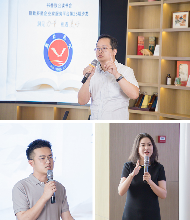 2024年7月19日,在深入貫徹習(xí)近平總書記關(guān)于文化自信和文化傳承的重要指示精神下,由長沙市政協(xié)、致公黨長沙市委會聯(lián)合指導(dǎo),致公黨長沙市委會書香致公讀書會及“致多星”企業(yè)家服務(wù)平臺主辦,綠之韻集團(tuán)、致公黨長沙市委會開福區(qū)工委、雨花區(qū)工委、岳麓區(qū)工委、望城總支部、大澤湖海歸小鎮(zhèn)致公聯(lián)合界別政協(xié)委員工作室共同協(xié)辦的以“洞見力量·相遇美好”為主題的書香致公讀書分享會暨“致多星”企業(yè)家服務(wù)平臺第23期沙龍活動在長沙成功舉辦。