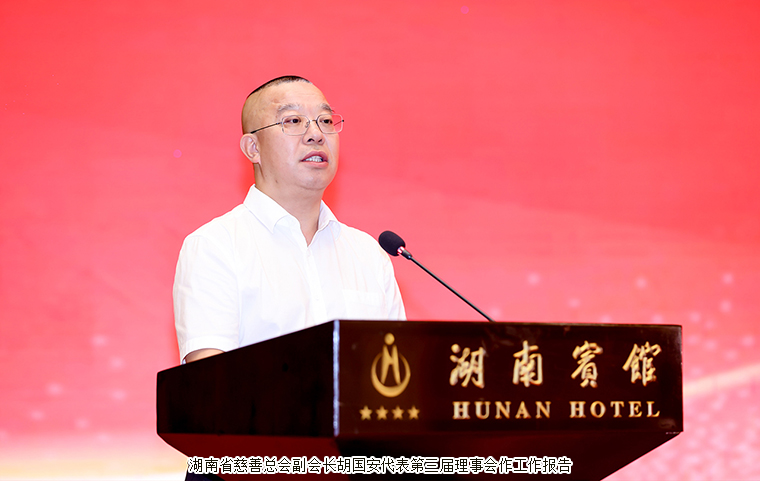 湖南省慈善總會副會長、綠之韻集團董事長胡國安代表第三屆理事會作工作報告。報告指出,第三屆理事會八年來,在習(xí)近平新時代中國特色社會主義思想指引下,聚焦政治引領(lǐng),依法治善,多方募集,品牌塑造,廣泛聯(lián)動,慈善宣傳,答好忠誠干凈擔當“政治答卷”,答好可感可及“民生答卷”、答好群眾滿意“安全答卷”??倳技钗?3.7億元,在打贏脫貧攻堅戰(zhàn)、新冠肺炎疫情防控和推進鄉(xiāng)村全面振興等工作中發(fā)揮了重要作用。疫情攻堅戰(zhàn)中,在騰訊公益等6個平臺上線“眾志成城共抗疫情”等288個網(wǎng)絡(luò)募捐項目,發(fā)動5700多萬人次參加捐贈,募集2.5億元。脫貧攻堅戰(zhàn)中,總會在51個縣實施“甜蜜蜜”羅漢果產(chǎn)業(yè)扶貧項目,產(chǎn)值8000多萬元,幫扶5000多戶困難群眾脫貧致富。實施“貧困群體慈善援助計劃”項目,募集資金1463萬,幫助困難群眾產(chǎn)業(yè)脫貧。在助醫(yī)助困活動中,總會實施藥品援助項目19個,藥品價值16億余元,幫扶癌癥等大病患者10萬余人次。