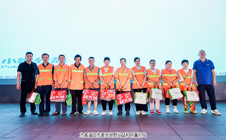 活動現(xiàn)場為高溫工作者代表發(fā)放了慰問品和防暑補(bǔ)給,長沙市慈善事務(wù)中心副主任、長沙市慈善總會副秘書長陳飛宇,長沙市福利彩票發(fā)行中心副主任崔玲為快遞小哥、外賣騎手發(fā)放防暑補(bǔ)給;長沙市民政局慈善事業(yè)促進(jìn)處副處長董又紅,長沙市慈善事務(wù)中心主任、長沙市慈善總會秘書長周勝規(guī)為交通警察、城管隊(duì)員代表發(fā)放防暑補(bǔ)給;長沙市廣播電視臺新聞中心副主任、政法頻道、新聞綜合頻道副總監(jiān)李越強(qiáng),長沙市人大代表、湖南省慈善總會副會長、綠之韻集團(tuán)董事長胡國安為環(huán)衛(wèi)工人發(fā)放防暑補(bǔ)給。