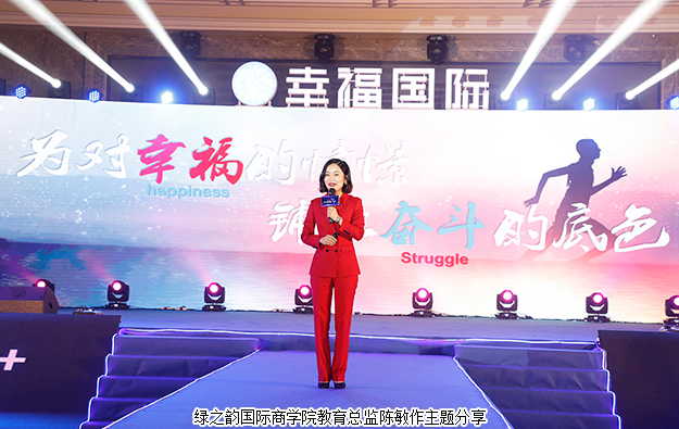 “綠色的信念在燃燒,綠色的愛在環(huán)繞;讓我的陪伴,成為依靠,為了你的幸?!痹谝黄ぐ旱臉非曋校珗?chǎng)齊聲合唱綠之韻幸福國(guó)際主題曲《為了你的幸?!?。隨后,綠之韻國(guó)際商學(xué)院教育總監(jiān)陳敏作《幸福的力量》主題演講,從新零售的角度進(jìn)一步向綠之韻家人們闡述綠之韻幸福國(guó)際的核心價(jià)值體系、技術(shù)領(lǐng)先優(yōu)勢(shì)、市場(chǎng)經(jīng)營(yíng)策略和未來發(fā)展規(guī)劃。