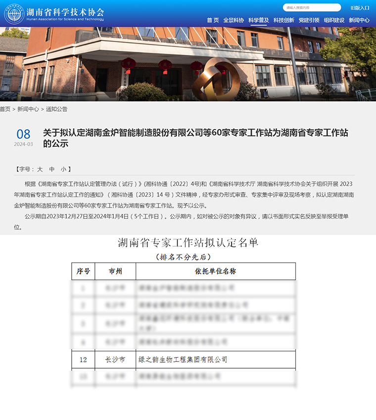 近日,根據(jù)《湖南省專家工作站認(rèn)定管理辦法(試行)》(湘科協(xié)通(2022〕4號(hào))和《湖南省科學(xué)技術(shù)廳 湖南省科學(xué)技術(shù)協(xié)會(huì)關(guān)于組織開(kāi)展2023年湖南省專家工作站認(rèn)定工作的通知》(湘科協(xié)通〔2023〕14號(hào))文件精神,經(jīng)專家辦形式審查、專家集中評(píng)審及現(xiàn)場(chǎng)考察,認(rèn)定了66家湖南省專家工作站,綠之韻集團(tuán)獲評(píng)上榜。這一榮譽(yù)不僅是對(duì)綠之韻集團(tuán)在科研創(chuàng)新、人才引進(jìn)及培養(yǎng)方面工作的高度認(rèn)可,也標(biāo)志著綠之韻集團(tuán)在推動(dòng)地方經(jīng)濟(jì)和社會(huì)發(fā)展中所作出的努力得到了省級(jí)層面的支持。