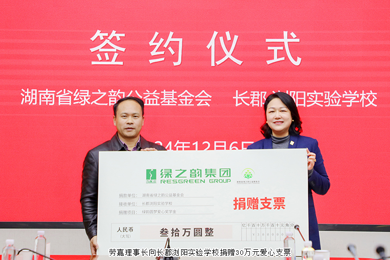 情系學(xué)子賦真情,愛(ài)心助學(xué)護(hù)成長(zhǎng)。2024年12月6日,綠之韻集團(tuán)聯(lián)合瀏陽(yáng)經(jīng)開(kāi)區(qū)政協(xié)委員工作室開(kāi)展“愛(ài)心助學(xué)·書(shū)香滿(mǎn)園”活動(dòng),走進(jìn)長(zhǎng)郡瀏陽(yáng)實(shí)驗(yàn)學(xué)校,捐資30萬(wàn)元設(shè)立愛(ài)心助學(xué)獎(jiǎng)學(xué)金,重點(diǎn)幫扶在校困難學(xué)生。瀏陽(yáng)經(jīng)開(kāi)區(qū)黨工委委員、管委會(huì)副主任肖賽男,瀏陽(yáng)市政協(xié)委員、瀏陽(yáng)經(jīng)開(kāi)區(qū)組織工作局局長(zhǎng)宋孟,瀏陽(yáng)市政協(xié)委員、長(zhǎng)郡瀏陽(yáng)實(shí)驗(yàn)學(xué)校黨總支書(shū)記、校長(zhǎng)肖節(jié)長(zhǎng),長(zhǎng)郡瀏陽(yáng)實(shí)驗(yàn)學(xué)校黨總支副書(shū)記、副校長(zhǎng)王中民、陳許生、李剖華、呂興,湖南省政協(xié)委員、綠之韻集團(tuán)總裁、綠之韻公益基金會(huì)理事長(zhǎng)勞嘉,瀏陽(yáng)市政協(xié)委員、綠之韻公益基金會(huì)秘書(shū)長(zhǎng)蔣文與瀏陽(yáng)市政協(xié)委員李今微、黃新開(kāi)、許大勇、羅芫等委員代表及學(xué)校代表參加活動(dòng)。