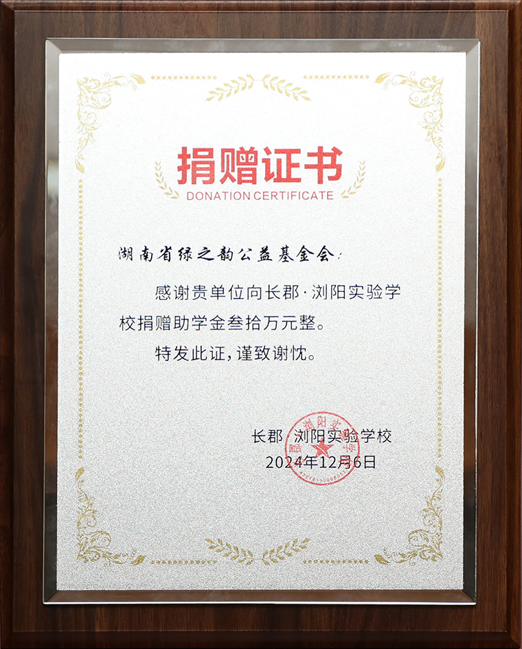 勞嘉理事長(zhǎng)表示,教育幫扶一直是綠之韻公益基金會(huì)的重要關(guān)注點(diǎn)之一。在胡國(guó)安董事長(zhǎng)的倡導(dǎo)下,公司始終堅(jiān)持承擔(dān)社會(huì)責(zé)任,堅(jiān)守“讓善行成為生命習(xí)慣 ”的發(fā)展理念,在綠之韻第五個(gè)五年規(guī)劃發(fā)展時(shí)期,集團(tuán)捐資1000萬(wàn)設(shè)立“綠韻圓夢(mèng)”愛(ài)心基金。希望每一位獲得愛(ài)心獎(jiǎng)學(xué)金幫助的學(xué)生都可以堅(jiān)定理想信念、奮發(fā)成才,未來(lái)在建設(shè)瀏陽(yáng)、投身鄉(xiāng)村振興、回報(bào)社會(huì)的實(shí)踐中放飛青春夢(mèng)想。在瀏陽(yáng)經(jīng)開(kāi)區(qū)企業(yè)黨工委、黨群局、政協(xié)委員工作室等組織領(lǐng)導(dǎo)下,我們也將認(rèn)真履行企業(yè)的責(zé)任與擔(dān)當(dāng),關(guān)注社會(huì)民生和教育事業(yè)的發(fā)展,希望這份善舉影響和帶動(dòng)更多愛(ài)心人士和企業(yè)積極參與愛(ài)心助學(xué)行動(dòng),共同為孩子們創(chuàng)造一個(gè)更加美好的未來(lái),照亮更多孩子的夢(mèng)想之路。