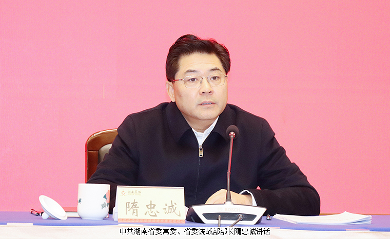 中共湖南省委常委、省委統(tǒng)戰(zhàn)部部長隋忠誠講話。他充分肯定省工商聯(lián)70年來的歷史貢獻,強調要學深悟透習近平總書記關于加強民營經(jīng)濟統(tǒng)戰(zhàn)工作和工商聯(lián)工作的重要論述,認真落實省委、省政府部署要求,加強思想政治引領,引導民營經(jīng)濟人士提振發(fā)展信心;持續(xù)擦亮“六個一”工作品牌,滾動辦好“十件實事”,助推全省經(jīng)濟社會高質量發(fā)展;培育和弘揚企業(yè)家精神,引導民營經(jīng)濟人士爭做“四個典范”;全面加強工商聯(lián)自身建設,打造“湖南民營經(jīng)濟人士之家”,奮力開創(chuàng)工商聯(lián)事業(yè)新局面。