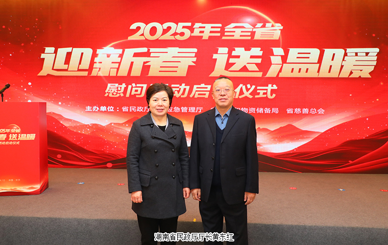 活動伊始,湖南省民政廳廳長黃東紅致辭。她表示,“中國式現(xiàn)代化,民生為大。”習近平總書記指出,要切實保障和改善民生,盡力而為,量力而行,多干順民意、惠民生、暖民心的實事,扎實解決人民群眾急難愁盼的問題。春節(jié)將至,幫助困難群眾溫暖過冬、祥和過年是各級黨委政府的最大牽掛。湖南省民政廳聯(lián)合省委宣傳部、省應急管理廳、省糧食和物資儲備局等相關單位連續(xù)21年開展“迎新春 送溫暖”慰問活動,這是增進民生福祉、助力人民實現(xiàn)美好生活向往的具體實踐,也是愛心企業(yè)勇?lián)熑巍⒒貓笊鐣纳鷦芋w現(xiàn)。2025年,站在新起點上,希望全省民政部門要精準對接困難群體的多元訴求,創(chuàng)新救助幫扶的模式,確保關懷不遺漏,讓愛的需要送到燈火闌珊處。希望全社會行動起來,共同奉獻愛心,共同關心困難群眾,共繪湖南溫暖民生新畫卷!