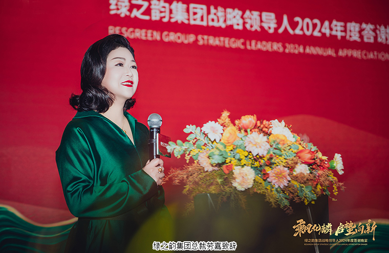 隨后,綠之韻集團總裁勞嘉致辭。她首先向蒞臨今天活動現(xiàn)場的各位領(lǐng)導、各位高管、各位市場領(lǐng)導人以及全體工作人員致以熱烈的歡迎、誠摯的感謝和親切的問候。2024年,是綠之韻集團在復雜多變的市場環(huán)境中砥礪前行、突破創(chuàng)新的一年。在胡國安董事長的帶領(lǐng)下,綠之韻遵循“企業(yè)發(fā)展與國家戰(zhàn)略同頻共振、自身發(fā)展與事業(yè)伙伴共贏共榮”的指導思想,正心明道,行穩(wěn)致遠,取得了一系列可喜的成績。綠之韻的發(fā)展離不開國家政策的支持,離不開行業(yè)的規(guī)范健康發(fā)展,離不開在座各位的齊心協(xié)力。剛剛召開的中央經(jīng)濟工作會議,明確提出:“要從制度和法律上把對國企民企平等對待的要求落下來,從政策和輿論上鼓勵支持民營經(jīng)濟和民營企業(yè)發(fā)展壯大,依法保護民營企業(yè)產(chǎn)權(quán)和企業(yè)家權(quán)益?!苯衲?月份,國務(wù)院已將“兩個條例”納入了立法預(yù)備修訂計劃。這些政策利好、行業(yè)利好,都為我們未來的發(fā)展注入了強勁的動力和信心。她相信,在各級領(lǐng)導的指導和支持下,在胡國安董事長的帶領(lǐng)下,在全體事業(yè)伙伴們和員工的共同努力下,打開了新篇章的綠之韻,一定會在這個充滿變革和機遇的美好時代,創(chuàng)造出更加輝煌的未來。我們始終要相信趨勢的力量,相信規(guī)律的力量,相信信仰的力量,相信相信的力量。