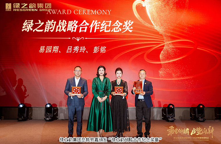 十載春秋,匠心堅守,宛如翠柏凌霜傲;歲月崢嶸,篤志前行,恰似蒼松映日驕。他們是綠之韻集團的戰(zhàn)略領(lǐng)導人,與集團相伴十載,歲月見證堅守,時光銘刻付出。對于他們而言,十年不是終點線,而是攀登新高峰的堅實臺階。勞嘉總裁為綠之韻好微生易園翔、綠之韻數(shù)字化呂秀玲,綠之韻數(shù)字化彭銘頒發(fā)了“綠之韻戰(zhàn)略合作紀念獎?wù)隆薄?/p>