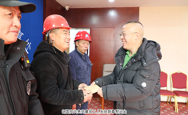 新春將至,暖意先行。為積極響應(yīng)湖南省政府“迎新春送溫暖”的號(hào)召,充分展現(xiàn)人大代表積極履職、為民服務(wù)的擔(dān)當(dāng)精神,充分發(fā)揮人大代表緊密聯(lián)系人民群眾的橋梁紐帶作用,切實(shí)關(guān)懷困難群眾,12月31日,長(zhǎng)沙市人大代表、湖南省慈善總會(huì)副會(huì)長(zhǎng)、綠之韻集團(tuán)董事長(zhǎng)胡國(guó)安,長(zhǎng)沙市雨花區(qū)人大代表、湖南綠之韻酒店管理有限公司副總經(jīng)理、綠之韻中心黨支部書記徐繼雷帶領(lǐng)愛心志愿者走進(jìn)雨花區(qū)高橋街道開展迎新春送溫暖慰問活動(dòng),為轄區(qū)內(nèi)的建筑工人們送上了節(jié)日的關(guān)懷與問候。