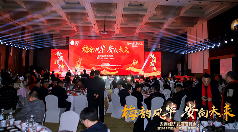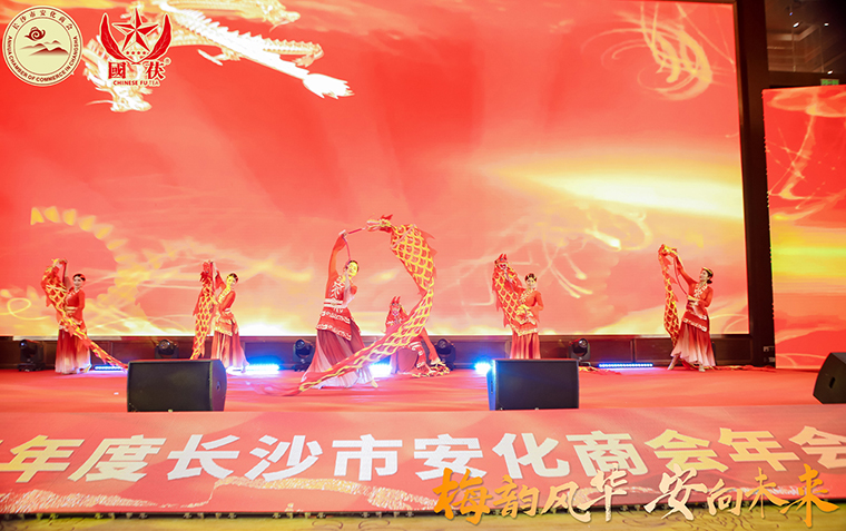 佳肴美酒賀新歲,暢敘鄉(xiāng)情共此時。當(dāng)晚,還舉行了2024年度長沙市安化商會年會。燈火輝煌的金色大廳里,華貴的吊燈灑下柔和的暖色光芒,映照著精美的食物和熱鬧的人群,整個會場成了匯聚歡樂的海洋,臺上載歌載舞,臺下觥籌交錯,笑容洋溢在每個人的臉上,一聲聲問候、一張張笑臉、一次次握手,無不訴說著大家對鄉(xiāng)情的深深眷戀。胡國安會長率商會成員登臺,向全體與會人員送上祝福,大家邊敘鄉(xiāng)情邊飲美酒,歡聲笑語,其樂融融。難忘愉悅的今宵,期待美好的明天。相聚雖然短暫,鄉(xiāng)情記憶永恒。它是我們共同努力的見證,也是對未來的美好展望。愿我們帶著愉悅和感動繼續(xù)前行,以更加昂揚(yáng)的姿態(tài)、更加務(wù)實(shí)的行動、更加奮發(fā)的動力,為長沙市安化商會發(fā)展開啟嶄新的輝煌篇章。