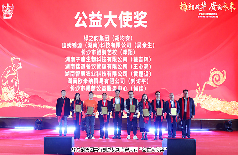 長沙市安化商會成立以來,不斷加強(qiáng)長沙、安化兩地聯(lián)絡(luò)和溝通,做好信息交流,并積極發(fā)展吸收優(yōu)秀的會員企業(yè)加入商會班組,壯大商會的實(shí)力,凝結(jié)安化籍企業(yè)家力量,取得明顯發(fā)展成果。為了表彰為安化發(fā)展做出貢獻(xiàn)的會員代表,大會相繼頒發(fā)了“優(yōu)秀會長獎”、“優(yōu)秀理事獎”、“優(yōu)秀黨員獎”、“公益大使獎”、“特殊貢獻(xiàn)獎”等獎項。綠之韻集團(tuán)積極投身社會公益事業(yè),帶領(lǐng)安化籍企業(yè)家回鄉(xiāng)考察交流;回報桑梓,踴躍參與家鄉(xiāng)各項公益活動,給鄉(xiāng)親送溫暖,為鄉(xiāng)村振興工作貢獻(xiàn)力量。安化縣人大代表、益陽市工商聯(lián)(總商會)副會長、綠之韻集團(tuán)常務(wù)副總裁胡均安榮獲“公益大使獎”。
