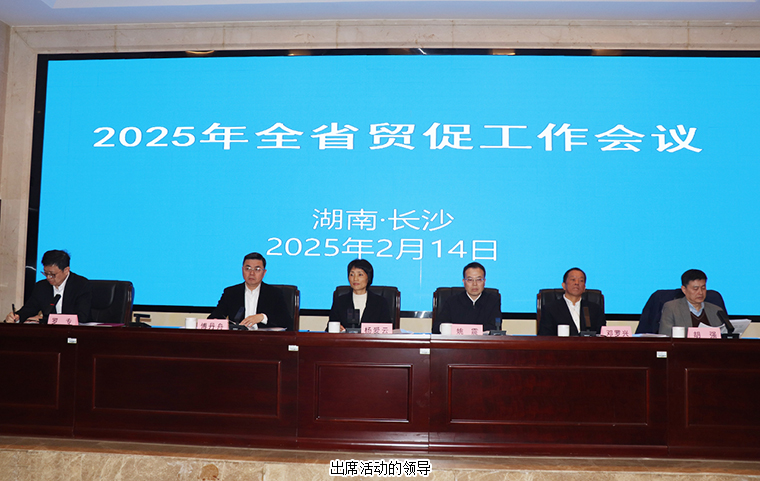 2月14日,2025年湖南省貿(mào)促工作會議在長沙召開。會議堅持以習(xí)近平新時代中國特色社會主義思想為指導(dǎo),全面貫徹落實二十屆二中、三中全會精神,貫徹落實全國貿(mào)促工作會議、省委十二屆八次全會暨省委經(jīng)濟工作會議、省“兩會”部署,總結(jié)2024年工作,分析當(dāng)前形勢,部署2025年工作任務(wù)。湖南省貿(mào)促會黨組書記、會長楊愛云作工作報告。湖南省貿(mào)促會領(lǐng)導(dǎo)班子成員傅丹舟、鄧羅興、羅專、胡強等會領(lǐng)導(dǎo)出席會議。湖南省商務(wù)廳黨組成員、省紀(jì)委監(jiān)委駐省商務(wù)廳紀(jì)檢監(jiān)察組組長姚震出席會議。中國國際商會湖南商會副會長、湖南省慈善總會副會長、綠之韻集團(tuán)董事長胡國安參加會議。