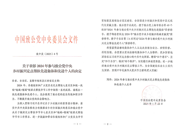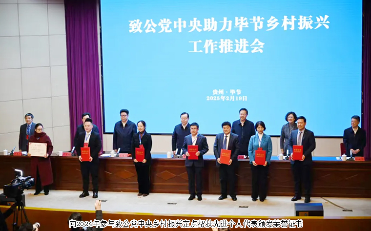 2024年,全國各級組織和廣大黨員在定點幫扶七星關(guān)區(qū)和統(tǒng)一戰(zhàn)線“地域+領(lǐng)域”組團(tuán)式幫扶畢節(jié)工作中取得一系列成果,涌現(xiàn)出一批先進(jìn)集體和先進(jìn)個人,充分展示了致公黨的優(yōu)良傳統(tǒng)和擔(dān)當(dāng)作為,不斷提升致公黨的社會影響力。會議表彰了2024年參與致公黨中央鄉(xiāng)村振興定點幫扶先進(jìn)集體和先進(jìn)個人。長沙市人大代表、致公黨湖南省委會“數(shù)字互聯(lián)”委員會名譽(yù)主任、綠之韻集團(tuán)董事長胡國安榮獲“2024年度致公黨中央鄉(xiāng)村振興定點幫扶先進(jìn)個人”榮譽(yù)稱號。