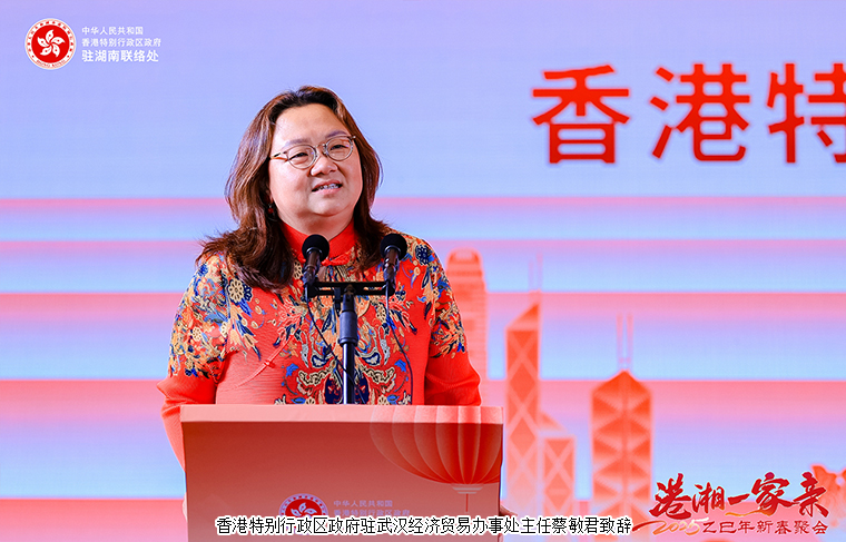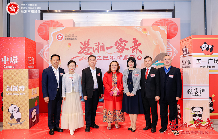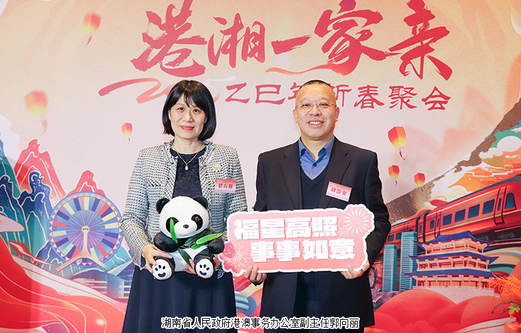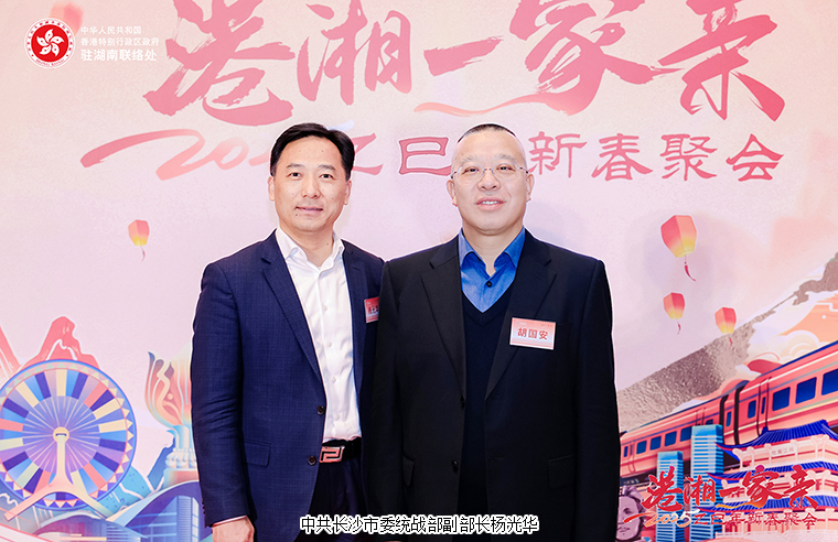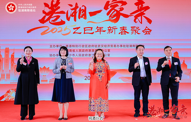 2025年2月25日,由香港特別行政區(qū)政府駐武漢經(jīng)濟(jì)貿(mào)易辦事處駐湖南聯(lián)絡(luò)處與湖南省人民政府港澳事務(wù)辦公室舉辦的“港湘一家親2025新春聚會(huì)”在湖南長(zhǎng)沙市成功舉辦。香港特別行政區(qū)政府駐武漢經(jīng)濟(jì)貿(mào)易辦事處主任蔡敏君;中共湖南省委統(tǒng)戰(zhàn)部副部長(zhǎng)、省政府僑辦主任劉衛(wèi)兵,湖南省人民政府港澳事務(wù)辦公室副主任郭向麗,中共湖南省委教育工委委員、省教育廳黨組成員余偉良,湖南省科技廳黨組成員、副廳長(zhǎng)佟來(lái),湖南省公安廳黨委委員、副廳長(zhǎng)余良勇,湖南省出入境邊防檢查總站副總站長(zhǎng)丁莉,湖南省商務(wù)廳黨組成員、副廳長(zhǎng)劉素月,湖南省文旅廳黨組成員、副廳長(zhǎng)龔鐵軍,中共湖南省委統(tǒng)戰(zhàn)部港澳臺(tái)處處長(zhǎng)梁良,湖南省人民政府港澳事務(wù)辦公室港澳處處長(zhǎng)黎沖;香港特別行政區(qū)政府駐湖南聯(lián)絡(luò)處主任李錦雄;長(zhǎng)沙市政協(xié)副主席劉金文,中共長(zhǎng)沙市委統(tǒng)戰(zhàn)部副部長(zhǎng)、市僑辦主任楊光華,中共長(zhǎng)沙市委統(tǒng)戰(zhàn)部港澳處處長(zhǎng)趙敏等領(lǐng)導(dǎo)出席。香港湖南聯(lián)誼總會(huì)常務(wù)副會(huì)長(zhǎng)、香港長(zhǎng)沙聯(lián)誼會(huì)會(huì)長(zhǎng)、綠之韻集團(tuán)董事長(zhǎng)胡國(guó)安與在湘港人和港資企業(yè)代表等近200名來(lái)賓共聚一堂同賀新春。