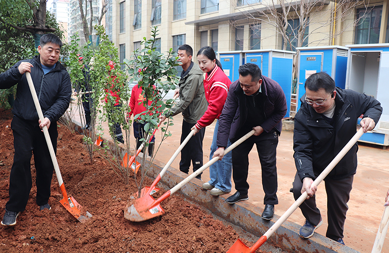三月的風(fēng)裹挾著春信的密語,將春意潑灑在綠之韻中心的園林間。3月11日,在植樹節(jié)來臨之際,綠之韻中心黨支部以“播種希望 共筑美好”為主題,在綠之韻中心開展植樹節(jié)主題黨日活動(dòng)。綠之韻集團(tuán)總裁勞嘉、綠之韻公益基金會(huì)秘書長(zhǎng)蔣文、湖南綠之韻房地產(chǎn)開發(fā)有限公司總經(jīng)理周君四,副總經(jīng)理勞毅與綠之韻中心黨支部書記徐繼雷帶領(lǐng)黨員志愿者們共執(zhí)春鋤,以草木為墨,為綠之韻中心園林項(xiàng)目工筆春色。