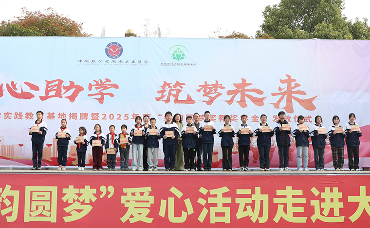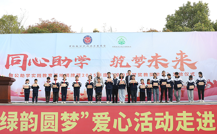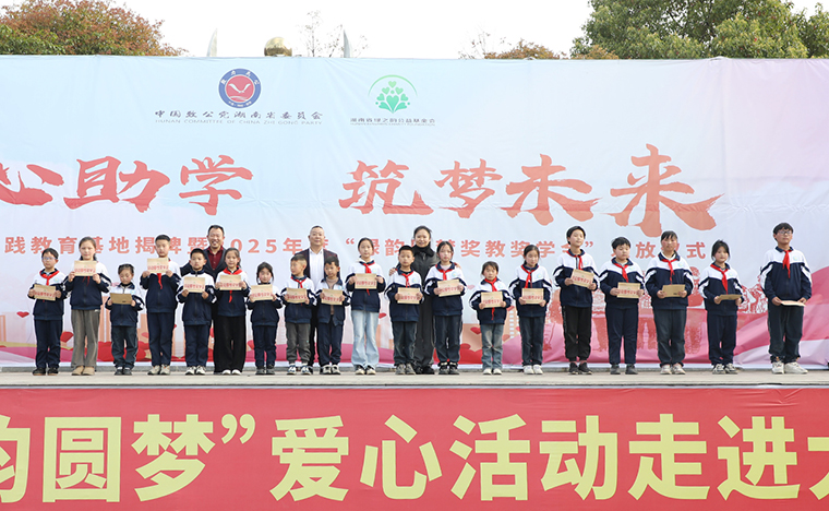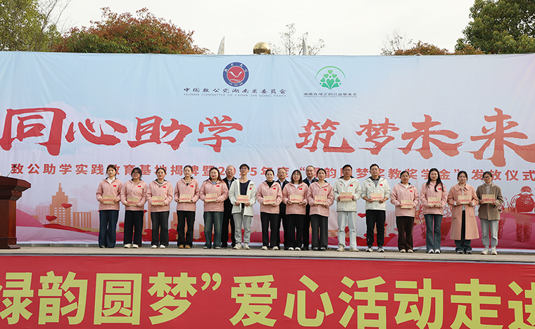 為營造濃厚的關(guān)心人才、尊重人才、支持人才以及愛學(xué)、勤學(xué)、好學(xué)、比學(xué)的濃厚氛圍,2023年,致公黨湖南省委會、湖南省綠之韻公益基金會“綠韻圓夢行動”捐贈50萬元愛心資金用于在安化大橋?qū)W校設(shè)立“獎教獎學(xué)金”,支持鄉(xiāng)村振興文化建設(shè)和教育事業(yè)發(fā)展。4月2日,致公助學(xué)實(shí)踐教育基地揭牌暨2025年度“綠韻圓夢獎教獎學(xué)金”發(fā)放儀式再次走進(jìn)安化縣冷市鎮(zhèn)大橋?qū)W校,為鄉(xiāng)村教育注入了新的活力。