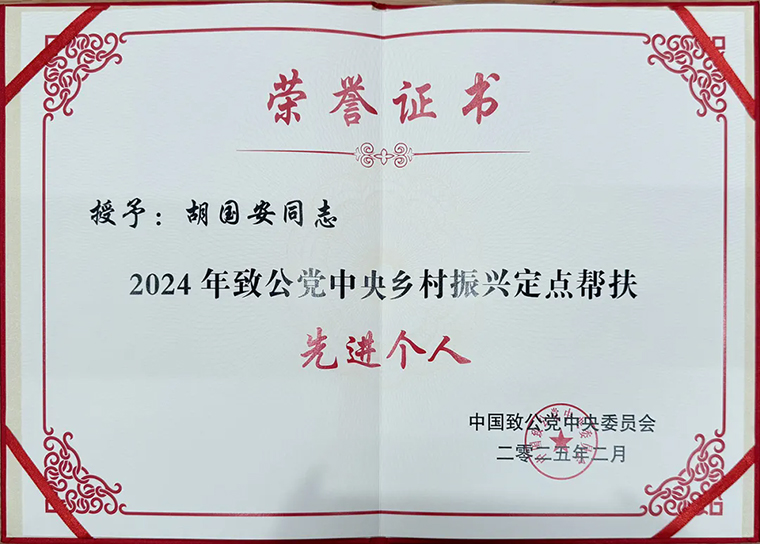 致力為公,是每一位致公黨員心底始終堅(jiān)守的承諾。多年來,綠之韻集團(tuán)在致公黨員、綠之韻集團(tuán)董事長胡國安的帶領(lǐng)下,始終秉持“造福人類、回饋社會”的企業(yè)理念,踴躍參與多項(xiàng)社會公益事業(yè),積極響應(yīng)省委統(tǒng)戰(zhàn)部、致公黨省委、市委的號召,奮力投身“一家一”助學(xué)就業(yè)·同心溫暖工程、助力扶貧攻堅(jiān)、鄉(xiāng)村振興工程?;顒悠陂g,湖南省人大常委會副主任、致公黨省委會主委胡旭晟為胡國安董事長頒發(fā)“2024年致公黨中央鄉(xiāng)村振興定點(diǎn)幫扶先進(jìn)個人”榮譽(yù)證書。胡國安董事長表示,作為一名致公黨員,他將時(shí)刻銘記自身的責(zé)任與擔(dān)當(dāng),在致公黨湖南省委會、致公黨長沙市委會的正確領(lǐng)導(dǎo)下,全力以赴,積極作為。未來,他會把這份榮譽(yù)化作動力,深入學(xué)習(xí),提升自身能力;發(fā)揮企業(yè)優(yōu)勢,帶動更多資源向鄉(xiāng)村傾斜;帶動更多致公黨員和企業(yè)家參與,探索更多創(chuàng)新幫扶模式,為鄉(xiāng)村振興與社會發(fā)展持續(xù)貢獻(xiàn)力量。