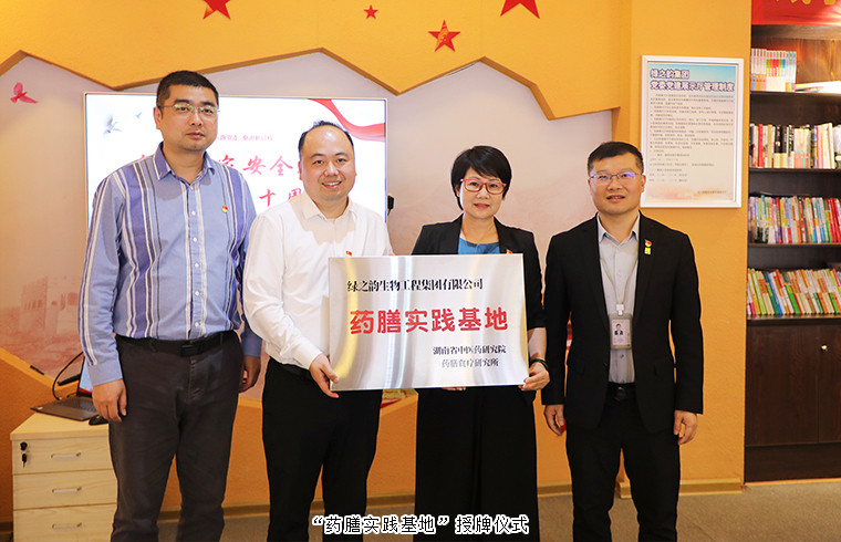 隨后,湖南省中醫(yī)藥研究院藥膳食療研究所黨支部副書記黃建華和藥膳食療研究所大健康產(chǎn)業(yè)研究室(膳食中心)主任彭志為綠之韻集團授予“藥膳實踐基地”牌匾。雙方將建立常態(tài)化交流機制,聯(lián)合開展主題黨日、技術(shù)研討、產(chǎn)學(xué)研用合作等活動,共同打造“黨建+科研”示范平臺,助力湖南省中醫(yī)藥產(chǎn)業(yè)高質(zhì)量發(fā)展。