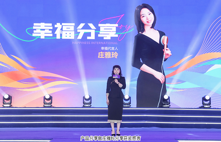在逐夢前行的道路上,他們是勇敢的開拓者,以星星之火,點燃分享的熱情。每一次的講述,都傳遞著產(chǎn)品的魅力;每一次的推薦,都凝聚著信任的力量。他們憑借著對產(chǎn)品的熱愛與深入了解,用真誠的分享打動著身邊的每一個人,為品牌的傳播默默耕耘。大會為“2025年度產(chǎn)品分享官3冠、4 冠、5 冠”獲獎?wù)哳C發(fā)榮譽,幸福代言人莊雅玲、呂佳潞分享獲獎感言。