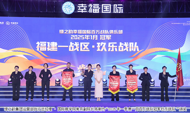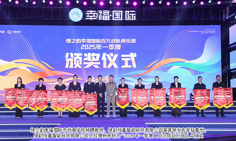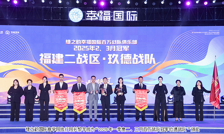 隨后,大會為2025年第一季度達成百萬業(yè)績的戰(zhàn)隊舉行了盛大的頒獎儀式。綠之韻集團市場運營中心市場業(yè)務(wù)總監(jiān)喻鳴鸞、綠之韻集團市場運營中心區(qū)域業(yè)務(wù)總監(jiān)譚紅為“2025年一季度一月達成百萬戰(zhàn)隊”頒獎。綠之韻幸福國際市場商學院特聘教授、綠韻悅喜智能科技有限公司首席研發(fā)專家駱春崗,綠韻悅喜智能科技有限公司總經(jīng)理楊邢軒為“2025年一季度二月達成百萬戰(zhàn)隊”頒獎。綠之韻集團品宣部執(zhí)行總經(jīng)理龍雅鳳,綠之韻健康專家委員會專家委員、綠之韻幸福國際市場商學院院長侯俊霞為“2025年一季度三月達成百萬戰(zhàn)隊”頒獎。綠之韻集團運營部執(zhí)行總經(jīng)理·國際商學院常務(wù)副院長陳敏為“2025年一季度一月百萬戰(zhàn)隊冠軍玖樂戰(zhàn)隊”頒獎。綠之韻國際商學院執(zhí)行院長黎芋成為“2025年一季度二、三月百萬戰(zhàn)隊冠軍玖德戰(zhàn)隊”頒獎。隨后,綠之韻國際商學院執(zhí)行院長黎芋成對綠之韻幸福國際的核心競爭力進行了全面解析。