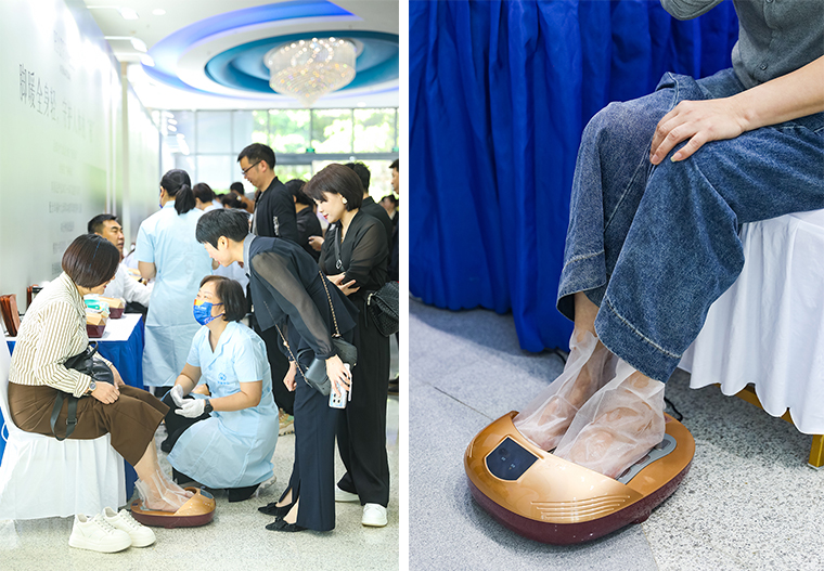 會上,還舉行了“享居足護儀”新品上市發(fā)布會。綠之韻健康專家委員會專家委員、綠之韻幸福國際市場商學院院長侯俊霞,綠之韻幸福國際商學院市場特聘教授、綠韻悅喜智能科技有限公司首席研發(fā)專家駱春崗,綠韻悅喜智能科技有限公司總經(jīng)理楊邢軒共同見證由綠之韻幸福國際自主研發(fā)的、具有核心競爭力、高含金量的“拳頭”新品——綠之韻享居足護儀的震撼發(fā)布,掀起了會場的高潮。