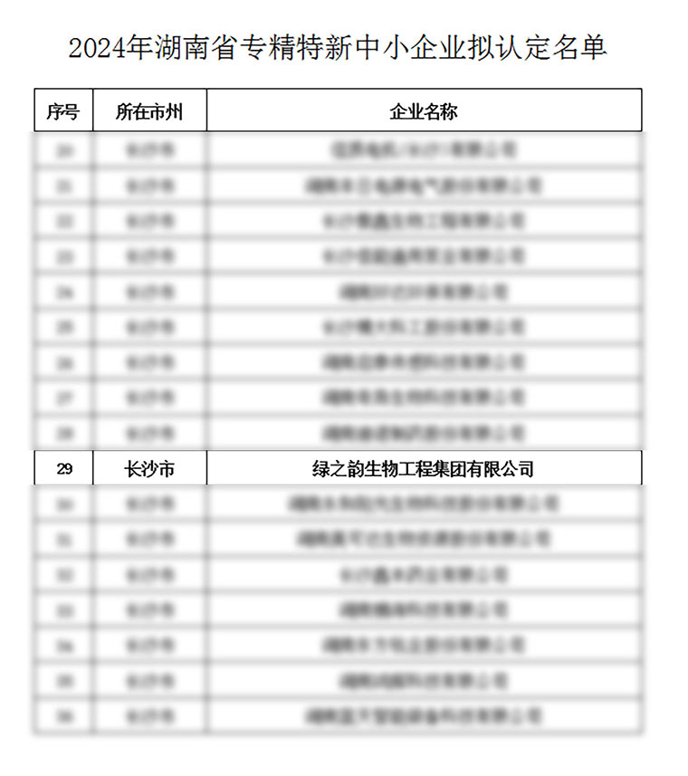 日前,根據(jù)工業(yè)和信息化部《優(yōu)質(zhì)中小企業(yè)梯度培育管理暫行辦法》(工信部企業(yè)(2022)63號)和《湖南省工業(yè)和信息化廳關(guān)于組織開展2024年湖南省專精特新中小企業(yè)申報(bào)和復(fù)核工作的通知》要求及相關(guān)政策文件公示,綠之韻生物工程集團(tuán)有限公司憑借專業(yè)化研發(fā)實(shí)力與技術(shù)創(chuàng)新優(yōu)勢,成功通過2024年湖南省專精特新中小企業(yè)復(fù)核,榮膺省級“專精特新”中小企業(yè)稱號。