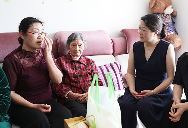 勞嘉理事長帶著綠之韻愛心志愿者送來健康產(chǎn)品和慰問金,段云英哆嗦著想要站起來和勞嘉理事長握手表達(dá)感謝,老公趕忙扶住,志愿者們也疊聲讓段云英好好休息和調(diào)養(yǎng),段云英媽媽到底沒忍住,又不想女兒看見,偷偷走進(jìn)房里,無聲痛哭。這一幕讓現(xiàn)場每一個(gè)人心都揪了起來,做了媽媽的女兒依然還是媽媽的寶貝,媽媽只恨自己不能替你生病替你痛,女兒,你快快好起來可好?