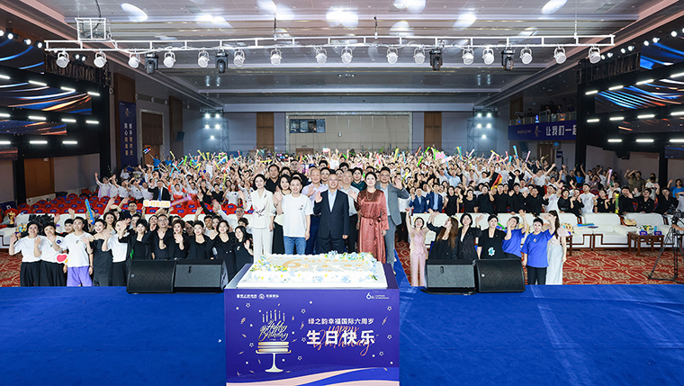 慶典尾聲,《為了你的幸?!返氖煜ば稍俅紊钋轫懫?,在場所有家人們齊聲合唱,生日蛋糕宛若時(shí)光之塔,在搖曳燭光中被緩緩送上舞臺。全場幸福代言人共同喊出生日祝福:“祝愿綠之韻幸福國際六周年生日快樂!”光影定格,笑臉如花,這是綠之韻幸福國際六周歲最溫暖、最盛大的定格。