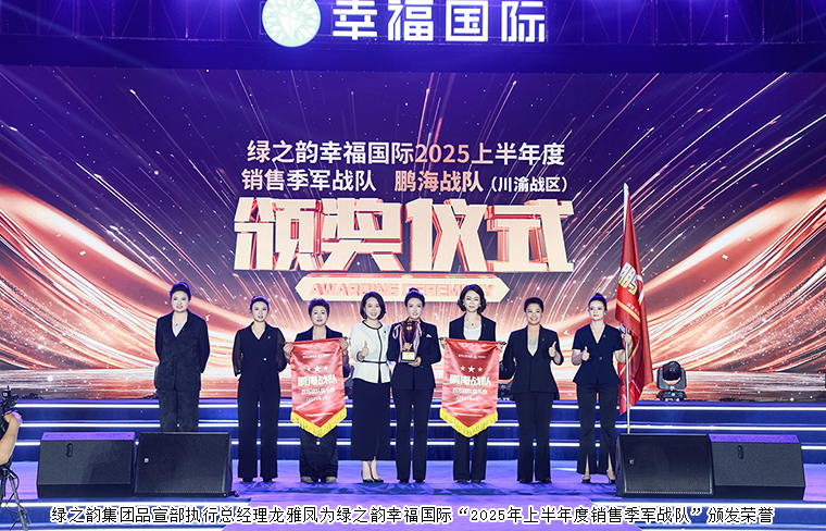 綠之韻幸福國際的榮耀殿堂里,百萬戰(zhàn)隊(duì)的旌旗迎風(fēng)招展,熠熠生輝。那些在市場一線沖鋒陷陣的戰(zhàn)隊(duì),如同璀璨的星辰,閃耀著奪目的光芒。他們以無畏的勇氣和堅(jiān)韌的毅力,帶領(lǐng)團(tuán)隊(duì)取得了一個(gè)又一個(gè)輝煌的成績。綠之韻集團(tuán)市場運(yùn)營中心市場業(yè)務(wù)總監(jiān)譚紅、市場運(yùn)營中心市場業(yè)務(wù)總監(jiān)喻鳴鸞為“綠之韻幸福國際4-5月單月達(dá)成百萬戰(zhàn)隊(duì)”頒發(fā)榮譽(yù)。綠韻悅喜智能科技有限公司總經(jīng)理?xiàng)钚宪?,綠之韻幸福國際市場商學(xué)院特聘教授、綠韻悅喜智能科技有限公司首席研發(fā)專家駱春崗共同為“綠之韻幸福國際4-5月雙月達(dá)成百萬戰(zhàn)隊(duì)”頒發(fā)榮譽(yù)。綠之韻幸福國際市場商學(xué)院院長、綠之韻健康專家委員會(huì)專家委員侯俊霞為綠之韻幸福國際“2025年5月百萬戰(zhàn)隊(duì)冠軍”玖樂戰(zhàn)隊(duì)頒發(fā)榮譽(yù);綠之韻國際商學(xué)院執(zhí)行院長黎芋成、綠之韻集團(tuán)運(yùn)營部執(zhí)行總經(jīng)理·國際商學(xué)院常務(wù)副院長陳敏、綠之韻集團(tuán)品宣部執(zhí)行總經(jīng)理龍雅鳳依次為綠之韻幸福國際“2025年上半年度銷售冠亞季軍戰(zhàn)隊(duì)”玖德戰(zhàn)隊(duì)、玖翔戰(zhàn)隊(duì)、鵬海戰(zhàn)隊(duì)頒發(fā)榮譽(yù)。戰(zhàn)旗所向,所向披靡,這正是綠之韻幸福國際“戰(zhàn)區(qū)化管理”最生動(dòng)的演繹。