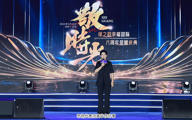 在全場熾熱的目光聚焦中,綠之韻集團(tuán)運(yùn)營總裁、幸福導(dǎo)師夏運(yùn)良深情回顧幸福國際六年璀璨旅程:今天,我們以“敬時(shí)光”之名相聚,致敬六年同行者。“舉一杯全力以赴敬時(shí)光”——這句歌詞,道盡了我們六年的奮斗與熱愛。今天,我們相聚不為慶祝數(shù)字,而是致敬這段由你們書寫的歷史:它是2019年6月23日綠之韻幸福國際的啟航,我們懷揣"讓中醫(yī)養(yǎng)生走進(jìn)千家萬戶"的初心,《奮斗,向幸?!返奶柦锹曋?,“家的文化,水的精神”滋養(yǎng)出幸福國際的文化,開啟了幸福代言人的征程,是六年風(fēng)雨中每一個(gè)具體的你、具體的事、具體的堅(jiān)持。六年風(fēng)雨路,步步皆印證:2020年疫情肆虐,我們轉(zhuǎn)戰(zhàn)線上,福建市場破土、悅喜工廠投產(chǎn),在暫停的世界里逆流而上;2021年產(chǎn)品邁入2.0時(shí)代,研發(fā)團(tuán)隊(duì)以匠心打磨健康守護(hù);2022年戰(zhàn)區(qū)化與"人才、產(chǎn)品、發(fā)展"三大長期主義落地,為今日厚積薄發(fā)奠基;2023年百萬戰(zhàn)隊(duì)崛起,《我們的夢》照進(jìn)現(xiàn)實(shí);2024年五周年里程碑印證了這條"難而正確"的路——你們的思維、格局與精神蛻變,讓每一步奮斗都有了回響。六周年,是穩(wěn)健 “走” 向堅(jiān)定 “跑” 的轉(zhuǎn)折。我相信,在機(jī)遇與挑戰(zhàn)并存的航道上,我們定能跑出加速度與高質(zhì)量。感恩胡總、勞總及集團(tuán)伙伴們的守護(hù),感恩家人與每一位同行者!未來的路,讓我們一起敬時(shí)光,敬這讓我們更堅(jiān)定的時(shí)光,敬我們永不褪色的初心,也敬我們這群守初心、創(chuàng)造幸福的同行者!未來的路,我們一起健健康康的走,踏踏實(shí)實(shí)的走,長長久久的走,走向下一個(gè)健康幸福的六年。