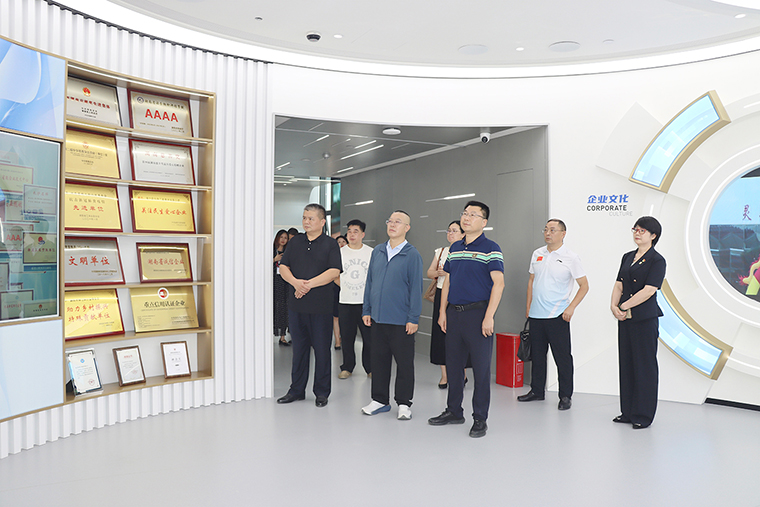 調研組一行先后參觀了綠之韻中心園林景觀和17層數智化科技展廳。展廳設計深度融入企業(yè)“水之道” 理念,以水的旅程為敘事主線,將企業(yè)初心與情懷貫穿始終,同時融合“東哲西技”概念,展現獨特的文化底蘊。展廳運用數字技術打造互動體驗,構建智慧型新時代中醫(yī)藥文化展示空間,通過立體空間多維度呈現集團企業(yè)文化、發(fā)展歷程、黨建公益、產品理念、科研實力及未來愿景等內容,直觀展現了綠之韻在大健康領域的積極探索與階段性成果。