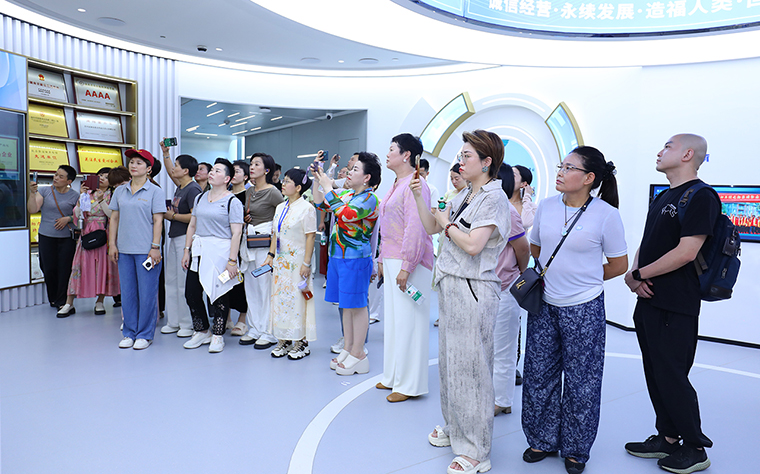 培訓尾聲,綠之韻碧波庭精英們滿懷期待地參觀了綠之韻中心園林景觀和17層數(shù)智化科技展廳。展廳深度融入企業(yè)“水之道”核心理念,以“水的旅程”為敘事主線,貫穿企業(yè)初心與情懷,并巧妙融合“東哲西技”概念,彰顯獨特文化底蘊。展廳運用前沿數(shù)字技術(shù)打造沉浸式互動體驗,構(gòu)建起智慧化的新時代中醫(yī)藥文化展示空間。通過立體空間的多維度呈現(xiàn),生動展示了集團的企業(yè)文化、發(fā)展歷程、黨建與公益事業(yè)、產(chǎn)品理念、科研實力及未來愿景,呈現(xiàn)了綠之韻在大健康領(lǐng)域的創(chuàng)新探索與重要成果。通過高科技展示與沉浸式體驗,大家近距離感受了公司雄厚的發(fā)展實力、豐富的產(chǎn)品矩陣、深厚的品牌歷程以及面向未來的宏偉藍圖,深受鼓舞,信心倍增,為奔赴未來的征程注入無限動能。