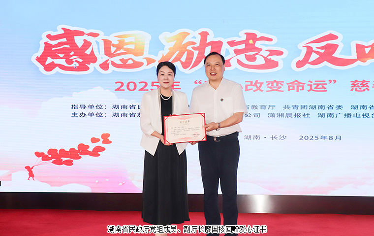 活動現(xiàn)場播放了“愛心改變命運”2025年主題視頻,愛心企業(yè)和受助學生代表發(fā)言。湖南省慈善總會會長黃蘭香,湖南省民政廳廳長黃東紅,湖南省民政廳黨組成員、副廳長廖國核,湖南省婦聯(lián)一級巡視員盧妹香,湖南省老干部局二級巡視員彭小平等領(lǐng)導上臺為受助受助學生代表發(fā)放助學金和升學禮,并勉勵他們感恩前行,以實際行動回饋社會關(guān)愛。
