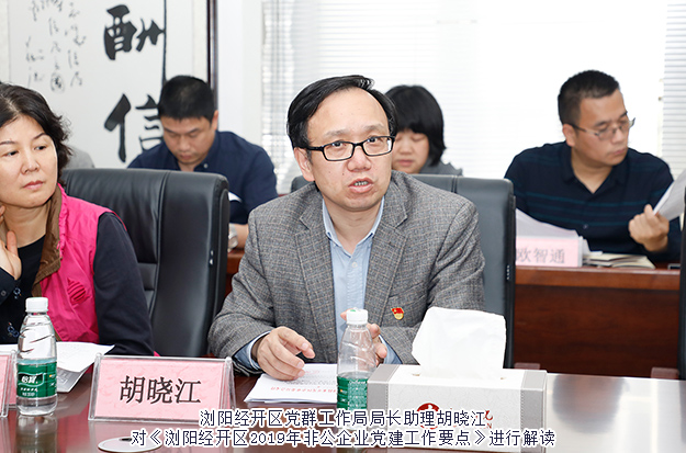 2019年4月18日,瀏陽經(jīng)開區(qū)2019年非公企業(yè)黨建工作推進(jìn)座談會舉行。瀏陽經(jīng)開區(qū)黨工委委員、紀(jì)工委書記、企業(yè)黨委書記肖賽男,企業(yè)黨委專職副書記、黨群工作局局長陳飛雪,黨群工作局局長助理胡曉江參加會議。綠之韻集團(tuán)黨委書記劉云參加會議。