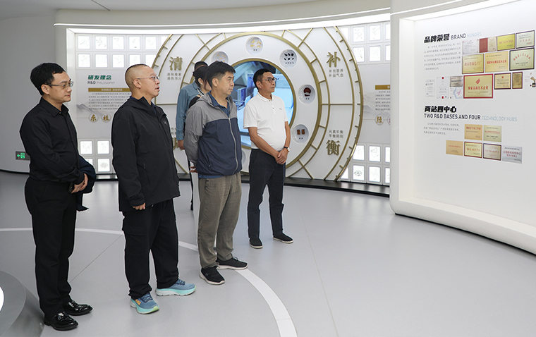調(diào)研組首先參觀了綠之韻中心數(shù)智化科技展廳。展廳設(shè)計深度融入企業(yè)“水之道”文化內(nèi)核,以水的流動與滋養(yǎng)為敘事脈絡(luò),融合東方哲學(xué)與西方技術(shù),展現(xiàn)企業(yè)的發(fā)展初心與文化積淀。展廳運用數(shù)字互動技術(shù),打造沉浸式智慧展示空間,多維度呈現(xiàn)綠之韻的企業(yè)文化、發(fā)展歷程、黨建成果、公益實踐、產(chǎn)品體系、科研布局與戰(zhàn)略愿景。胡國安董事長向調(diào)研組詳細(xì)介紹了企業(yè)的發(fā)展脈絡(luò),展廳內(nèi)陳列的最新科技成果與創(chuàng)新產(chǎn)品,生動體現(xiàn)了綠之韻在大健康產(chǎn)業(yè)的前沿探索與扎實積累。
