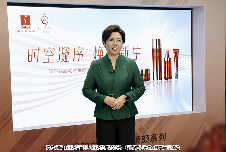 發(fā)布會伊始,綠韻蘭茜品牌概念片率先登場,細膩的視覺語言層層詮釋 “東植西萃” 的品牌哲學,讓觀眾直觀感受東方之美與科學護膚的碰撞,拉開了本場新品直播發(fā)布會的序幕。綠之韻集團市場運營中心市場商學院院長·特聘教授侯俊霞作為首批產品體驗官從真實使用感受出發(fā),分享了新品獨特的膚感與卓越功效。