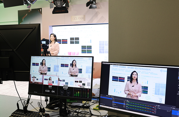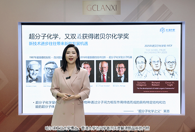 一段杉海技術短片緩緩揭開超分子技術的神秘面紗。哈爾濱工業(yè)大學博士、香港大學訪問學者劉天奇親臨直播間,以詳實的數(shù)據(jù)、生動的原理解析,全面展現(xiàn)超分子技術在成分促滲、活性保護、膚感優(yōu)化及穩(wěn)定性提升四大維度的突破,清晰勾勒出這項技術如何打破傳統(tǒng)護膚局限,讓活性成分真正直達肌底。技術解讀過后,綠之韻集團執(zhí)行總經(jīng)理梅其慧分享了超分子技術在產品市場上的競爭力,闡述品牌如何將科研成果落地為消費者可感知的護膚價值。
