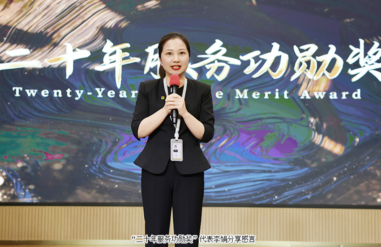 榜樣引領(lǐng)方向,榮耀致敬堅(jiān)守。大會(huì)隆重表彰了2025年度“五年服務(wù)英才獎(jiǎng)”、“十年服務(wù)忠誠(chéng)獎(jiǎng)”與“二十年服務(wù)功勛獎(jiǎng)”獲得者,向與企業(yè)風(fēng)雨同舟的忠誠(chéng)員工致以崇高敬意。勞嘉總裁、胡均安常務(wù)副總裁依次為獲獎(jiǎng)優(yōu)秀個(gè)人頒發(fā)榮譽(yù)獎(jiǎng)杯和證書。獲獎(jiǎng)代表蔣文、李娟、牛小紅、羅瓊蕾深情分享與綠之韻共同成長(zhǎng)的心路歷程,她們以歲月為筆,以實(shí)干為墨,生動(dòng)詮釋了“擇一事終一生”的執(zhí)著與熱愛,為企業(yè)文化注入了深厚而溫暖的底蘊(yùn)。