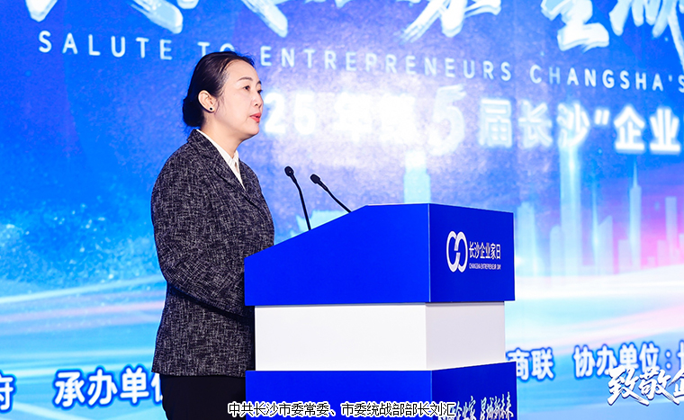 中共長沙市委常委、市人民政府常務(wù)副市長彭華松講話。他表示,廣大企業(yè)家是長沙經(jīng)濟(jì)發(fā)展的“頂梁柱”。全市已培育形成7大千億級產(chǎn)業(yè)集群、3個國家級先進(jìn)制造業(yè)集群、2個國家級中小企業(yè)特色產(chǎn)業(yè)集群,成為全球第二個集聚5家以上世界工程機(jī)械50強(qiáng)企業(yè)的城市。民營經(jīng)濟(jì)貢獻(xiàn)占GDP的比重從十年前的45%躍升至65%。廣大企業(yè)家是長沙創(chuàng)新驅(qū)動的“生力軍”。全市近80%的技術(shù)合同、創(chuàng)新平臺、科技項(xiàng)目源自企業(yè),企業(yè)研發(fā)投入占全社會比重超過70%。廣大企業(yè)家是長沙民生改善的“守護(hù)者”。企業(yè)家積極履行社會責(zé)任,投身脫貧攻堅、慈善公益、穩(wěn)定就業(yè)等領(lǐng)域,民營企業(yè)吸納就業(yè)420多萬人,占全市就業(yè)總?cè)藬?shù)的80.1%,貢獻(xiàn)了全市90%以上的新增就業(yè)。站在“十四五”收官,“十五五”開啟的歷史節(jié)點(diǎn),他強(qiáng)調(diào),希望廣大企業(yè)家堅守實(shí)業(yè)、做強(qiáng)主業(yè)。深耕專業(yè)領(lǐng)域,加快推動產(chǎn)業(yè)智能化、綠色化、融合化發(fā)展,積極謀劃國際化戰(zhàn)略布局,讓“長沙制造”金字招牌底色更亮。希望廣大企業(yè)家勇于創(chuàng)新、引領(lǐng)未來。聚焦關(guān)鍵核心技術(shù)和“卡脖子”環(huán)節(jié),強(qiáng)化研發(fā)投入和人才引育,深化與高校、科研院所協(xié)同創(chuàng)新,推動更多科技成果轉(zhuǎn)化為現(xiàn)實(shí)生產(chǎn)力。希望廣大企業(yè)家心懷家國、實(shí)干擔(dān)當(dāng)。立足現(xiàn)代企業(yè)制度,胸懷國際視野,自覺涵養(yǎng)家國情懷,把企業(yè)價值與社會價值、把經(jīng)濟(jì)效益和社會效益融合起來,彰顯更大社會擔(dān)當(dāng)。