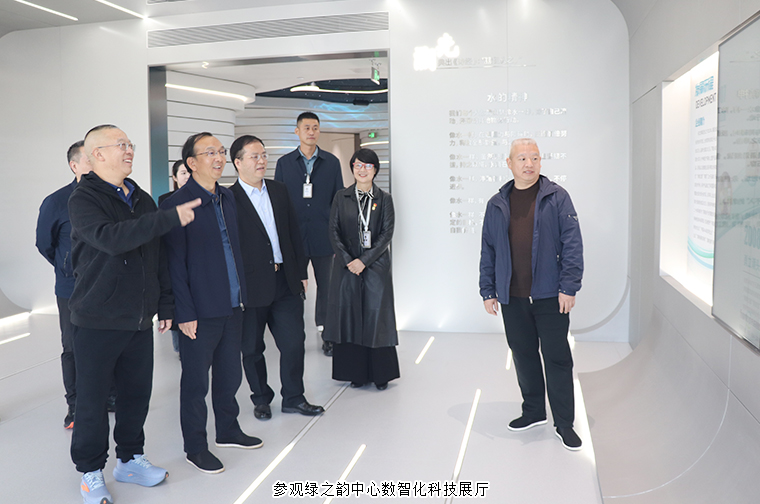 調(diào)研組隨后參觀了綠之韻中心數(shù)智化科技展廳。展廳以“水之道”為企業(yè)文化內(nèi)核,融合東方哲學(xué)與數(shù)字技術(shù),通過數(shù)字化互動技術(shù)和智慧展陳手段,立體呈現(xiàn)了綠之韻集團的企業(yè)文化、發(fā)展歷程、黨建公益、產(chǎn)品理念、科研實力及戰(zhàn)略愿景。胡國安董事長向調(diào)研組介紹了企業(yè)在產(chǎn)品研發(fā)與產(chǎn)業(yè)拓展方面的創(chuàng)新實踐,展現(xiàn)了綠之韻在大健康領(lǐng)域的持續(xù)探索與成果。