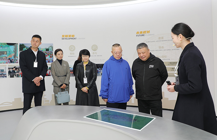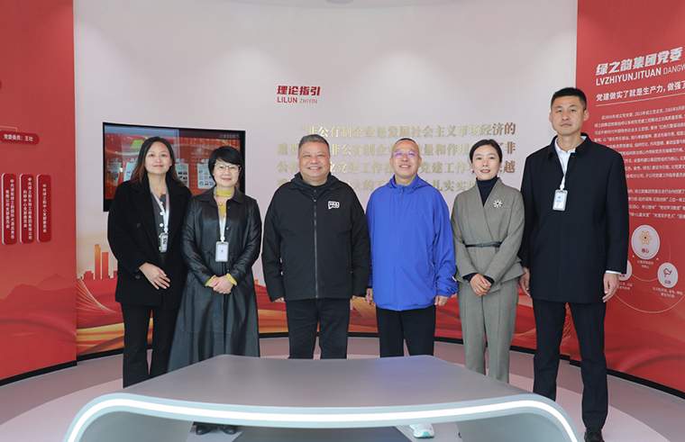 陳剛主席一行先后走進(jìn)綠之韻中心數(shù)智化科技展廳、黨建教育陣地與政協(xié)委員工作站。數(shù)智化科技展廳以 “水之道” 文化為核心設(shè)計理念,融合東方哲學(xué)智慧與西方先進(jìn)技術(shù),通過數(shù)字化互動系統(tǒng)構(gòu)建起多感官沉浸式體驗空間,全面展現(xiàn)了企業(yè)發(fā)展歷程、企業(yè)文化、全鏈條產(chǎn)品體系、核心科研突破及公益實踐足跡。在黨建教育陣地,劉云書記詳細(xì)匯報了企業(yè)非公黨建成果:自2006年成立黨支部以來,企業(yè)已構(gòu)建起黨委為核心、工會與公益基金會協(xié)同聯(lián)動的黨建格局,創(chuàng)新推行 “三色三有三亮” 工程與 “三維管理模式”,打造特色黨建品牌,實現(xiàn)黨建與企業(yè)發(fā)展同頻共振。
