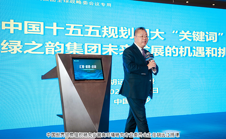 在時代浪潮奔涌向前的新征程上,唯有錨定國家戰(zhàn)略航向、行業(yè)發(fā)展趨勢,才能把握發(fā)展先機。會上,綠之韻集團企業(yè)戰(zhàn)略發(fā)展顧問、中國世界貿(mào)易組織研究會營商環(huán)境研究專業(yè)委員會主任胡遠江授課。他以專業(yè)視角深度拆解國家“十五五”規(guī)劃四大關(guān)鍵詞,系統(tǒng)剖析了規(guī)劃背后蘊藏的產(chǎn)業(yè)機遇與行業(yè)挑戰(zhàn),精準(zhǔn)對接綠之韻集團的戰(zhàn)略根基與發(fā)展?jié)摿?。他提出,要繼續(xù)以高質(zhì)量發(fā)展為引領(lǐng),構(gòu)建新發(fā)展格局,培育世界競爭力;以創(chuàng)新驅(qū)動為核心,提升企業(yè)創(chuàng)新能力,強化科技自立自強;以綠色發(fā)展為路徑,加快發(fā)展方式轉(zhuǎn)型,踐行綠色低碳理念;以共同富裕為目標(biāo),實施創(chuàng)業(yè)優(yōu)先戰(zhàn)略,賦能創(chuàng)業(yè)者成長。國家市場監(jiān)管總局課題組專家、北大EMBA總裁班特聘教授李征,國家市場監(jiān)管總局行政學(xué)院特邀講師苑芳軍帶來主題分享。精彩的分享令在場家人們深受啟發(fā)、倍感振奮。